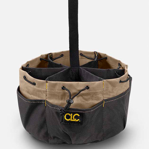 Deze multifunctionele BucketBag™ met trekkoord heeft 6 compartimenten in het midden voor het organiseren van kleine onderdelen, plus 12 andere vakken en zakken die zijn ontworpen om een groot aantal verschillende handgereedschappen en accessoires op te bergen.